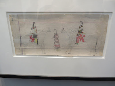 It is a screen that was made by an unknown artist some time between 1600 and 1620. It depicts six tea-storage jars and six floral arrangements. The jars, I was told, represent the transition from the opulence of the Momoyama period to the rustic aesthetic of the early Edo. I think the flower arrangements may reflect similar historical stylistic shifts. What I loved was the images, the way they were placed in space, the way that if you looked down the screen in one direction you saw only the jars while if you looked from the other direction you saw only the flowers. Actually what I loved was the thing's beauty and the way it conveyed quietness - at least it did to me.