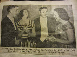 I took my mother to a funeral in Victoria this week. The person who'd died had made a scrapbook of cuttings from the social pages of Melbourne newspapers - yes, they actually had such things, slavish with adoration of Clyde girls and people from the Western District - from the days when she and my mother were young.